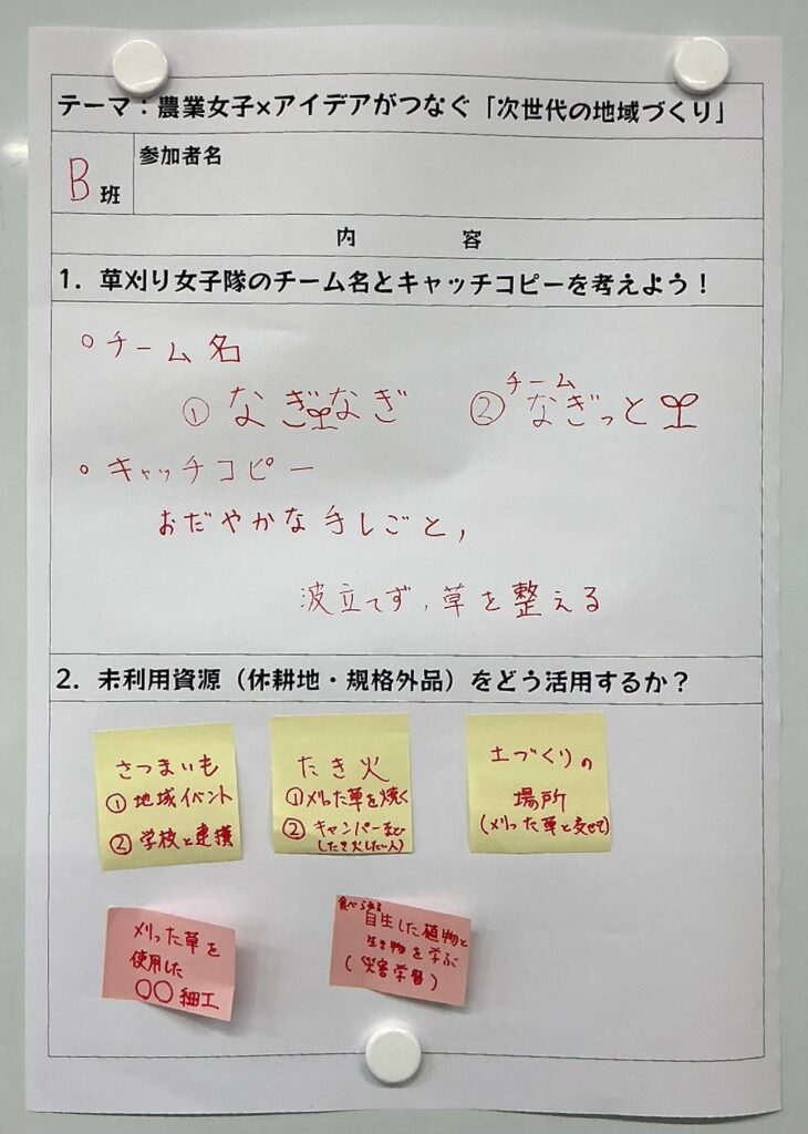 ついに、草刈女子隊のチーム名と共に、集大成となるアクションプランがまとまりました。