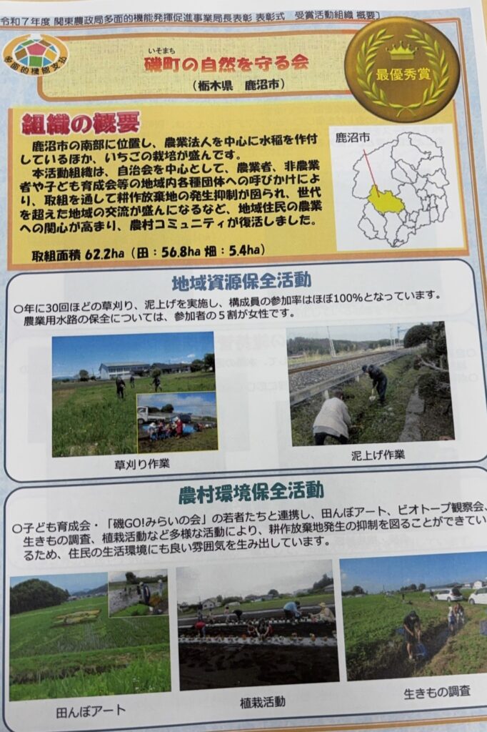 令和7年度関東農政局多面的機能発揮促進事業局長表彰 最優秀賞受賞!